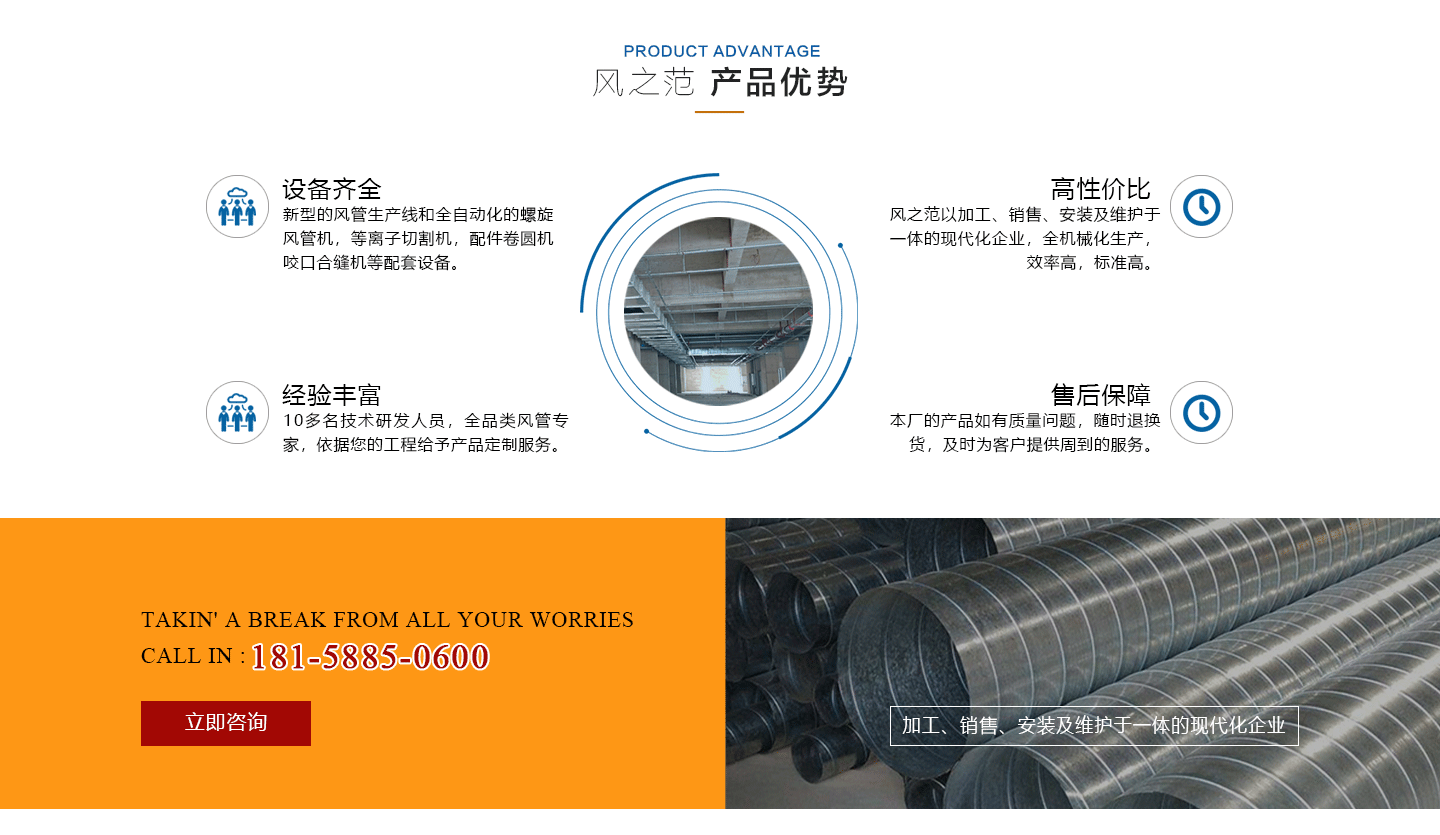 安徽風之范通風設備有限公司,是北京恒通偉業通風設備有限公司再創(chuàng)的新臺階,多年來,公司員工憑著“誠信敬業、團結拼搏、勇于開拓、務實進取”的企業精神,先后承接了多項重點工程項目,使公司健康穩(wěn)步發(fā)展。現由于公司的壯大,業務的拓展,又于2016年底,成功坐落于安徽省合肥市包河區。本公司生產設備精良,技術力量雄厚,質保體系完善!讓用戶體驗到,貼心的服務,無憂的售后!風之范是以加工、銷售、安裝及維護于一體的現代化企業,同時以“創(chuàng)未來之風、營誠信之范”為核心理念,面向全國各省市,大量生產鍍鋅板、不銹鋼、玻璃鋼、酚醛復合等通風管道、螺旋風管、廚房排煙罩、油煙凈化器、各種風機風柜、風口風閥、靜壓箱等配件設施。廣泛承接商場、工廠、酒店、寫字樓、地下室等,消防排煙工程、除塵凈化工程、室內通風工程、暖通空調工程、廚房排煙凈化工程。我們力求上進,追求,歡迎各界人士技術指導,經濟合作,共創(chuàng)美好明天!